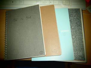 懐かしい本たちです。 学生時代に日記のように絵(落書)とコメントを書きつづったノートです。 幕末・明治・大正・昭和でいろいろ書き遊びました。 先日、サイト交流のあるソラさまより、 夏インテでの無料冊子にイラストを寄稿のお話をいただき、 しばらく絵から離れていたのですが、 せっかくなのでチャレンジしてみようかと、参加の回答をしたのがきっかけで、 古いノートを引きずりだしました。 昔どんな絵を描いていたか・・・。どの人物をどんな顔で書いていたか 思い出すため・・・・。(わははhhhhh) 久しぶり(といっても書いてしまったら見返すことなんていままでなかったのですが)に 昔の絵を見ると、こっぱずかしくてたまりません。 赤面モノです。 これじゃぁ捨てるに捨てれない・・・。見られないように隠滅をはかるしか・・・。 とりあえず、しばしの活動にはしっかり役に立っていただきます。 PR この記事にコメントする