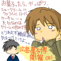 どんな感じのものかよくわかっていませんが、 お菓子でできた厳島神社を職人が開催までの間に 制作していたのは知っています。 広島での開催は原爆ドームがまだ原爆ドームじゃないときに一度やって以来で、 90余年ぶりだとか…。 そんなに前からあったのね…。 お菓子といえば今村均!(笑) PR この記事にコメントする