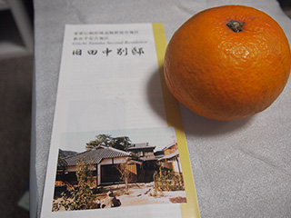 駐車場から車を出して、次の目的地へ移動。 旧田中別邸です。 …しまった。全景とるの忘れてたーーー!!!(滅) でも他のはいろいろ撮ってみたので、それでカバーします。 夏みかん畑が広がっているので、面積は広いです。 丁度いい色にみかんが実ってました。 このお宅は、萩に夏みかんの栽培を広めた小幡高政により 主な骨格が完成されたとされており、大正後半から 田中義一の所有となり、主屋の増改築が行われたそうです。 個人的な感想ですが、すごくおしゃれ!和のおしゃれを感じます。 上の写真の床の間なのですが、中央の柱、桜の木なんです。 他の部屋にも床の間はいくつかあり、それぞれあしらっている柱が違っています。 風情ありますね~vvvvv ◆建屋の2階 五松閣より見下ろす また、邸内には展示もあります。 ◆大将服 デカい。身長が…。 案内してくださった方によると180センチは身長があったとか。 写真見てもデカいもんなー。 ちなみにうちの旦那が170センチなのですが、 その旦那の頭がちょうど部屋の入口の梁に当たるか当たらないか。 …ということは、義一はこの家でうろうろする際は頭かがめてたってことになる。 ちょっと住みずらそう…。 他にも名刺や眼鏡や辞令などいろいろと展示がいろいろと! あ。あと、こんなのも置かれていました。 萩市お手製の義一メモリアルアルバム(?) 若い時から総理時代までいろいろとお写真がwwww 最後に帰る際、受付のおばちゃんが「夏みかんではないケド」 と甘夏を下さいました。↓ 車の中でとても良い香りを堪能しつつ、 お家でおいしくいただきましたvvvv さて、残るはあと1か所。 これは次レスにて☆ PR この記事にコメントする
