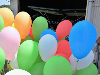 「風船割り大会」に行ってきました。 私は昨日離陸ができるようになったため、 初心者でも参加可能のタイムトライアルに参加。 風船割るんじゃなくて、飛行時間3分間を体内時計で計って スタートと終了をコールするもの。 奇跡の3分ジャスト記録者さんが現れたため、 賞品もらえませんでしたが、参加賞もらいました! 山のような洗剤&ドリンク(笑) 肝心の風船割り大会は、予想以上に大破した機体が出現し、 波乱のうちに終了となりました。 たいていが木製なので、結構見るも無残。 所有者がいちばん悲しいので、残骸写真は撮ってません。 代わりに色とりどりの風船~vvv 綺麗な青空が広がり、日焼けがコワイですが、 何とか防備したので…大丈夫かな?? えー。まずは最初にごめんなさいです。