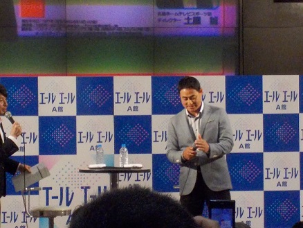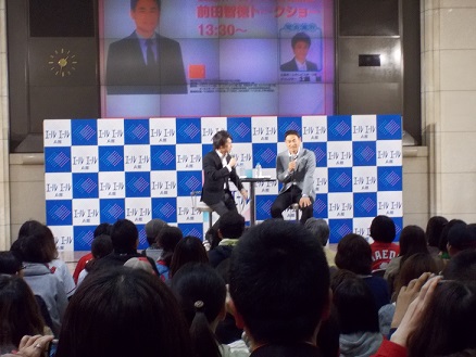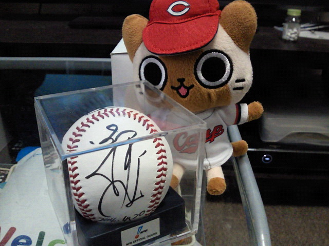 昨年引退してからは、野球解説・球団アドバイザーとして 活躍されているのですが、今日は30分ほどではありますが 楽しいトークショーが繰り広げられました~ 無料とはいえ、なかなかの人の入り。 というか、男性客率が高い高い! ヒール履いてきてよかった…。 埋もれて見えないところでした。 ↑へっぽこカメラで目いっぱいのズーム。 トークはホームテレビアナウンサーの司会に 導かれつつ、すすめられました。 時に笑いあり、時に自虐的にという独特の(トーク)で笑わせていただきました! 自称・暇人だと…。んなわけナイナイ!!!!wwwwww 今や広く知れ渡った甘党情報ですが、 「もう、この辺(脇腹)やこの辺(お腹)がヤバいんですよ」 ……悲鳴。 ↑ 引き絵。なかなか遠いかったwww 休日の過ごし方や家族についてもいろいろ話題を出していただきました。 「(子供のつきそいで)最近、映画を見に行きました。 ドラえもんの。 上映中仮眠をとろうと思ってたんですが、始まってみると ガァーっと見ちゃって…。感動しましたよ。 すごいですよ、ドラえもん。」 本人は言うかどうか悩んでたとのことですが、言っちゃったwと(笑) 現役時代、寡黙な印象が強かったのですが、 引退してからはホントに「これが素なんだ」という面白さを見せてくれる前田さん。 想像以上に笑わせてもらいました! そして、トーク終了後は抽選会が開催。 参加には条件があるのですが、 私は幸い、一人当たり上限三枚という事で、三枚の抽選券をゲット。 会場付近のお店の商品券&駐車場サービス券(15名)か 前田智徳さんのサイン色紙(10名)かサインボール(5名)という内容。 それがまさかのサインボール当選。 人生初のサインボールですよ!!! それが引退したとはいえ、前田智徳さんの!!!! 瞬間から足ブル・手ブル!!!!!!!!!! 色紙とボールはステージ上で本人から直接いただけ、 さらにボール当選者は2ショット写真まで!!!! ファーーーーーーーー!!!!!!!!!!!!!! 幸せだ・・・!! ちなみにこれ今話題の「疑惑の統一球」だそうですwww ホントに大切にします! 明日みんなに自慢してやろう!!!!