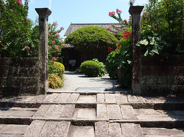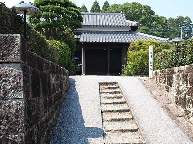 杉の木に謎のお祈りをした後は、 小村生誕の碑を見に行きました。 この生誕の碑の揮毫は東郷平八郎によるもの。 そして、小村記念館で松岡が写っていた写真はまさにここ!! なので松岡と同じ位置に立って記念撮影もしました。 後で見ると、異常なテンションが明らかな写りしていたので、 ちょっと恥ずかしかったり…。(後の祭り) この日は広島へ帰る日でもあったので、 時間の押す中、小村の巣…じゃない、生家へーーーー!!! じゃーん。 遠目でわかりづらいけど、電灯あるよ! …じゃないって。 遠目で見るとこんな感じ。 非常に南国的な石造りの入口。 そして、当時の写真がこちら…。 玄関は結構当時の雰囲気そのままに感じれますね~。 実は時間の都合上、お墓と小村銅像まで回れませんでした。 また行きたい。また!!! 申込期限最終日とさせていただいておりました