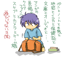 ゆっくり時間のある今日のうちに準備できることをしとこうと思い、 カバン持ってきて、荷物ブチ込み完了しました。 火曜日はおそらく翌日の定時ダッシュに備え、 残業とかもあり得るので…、手ぬかりなくいこうっ! 仕事でも会社に行かないというだけで、それだけで幸せ感じるーvv …絵。広田さんが不真面目な感じになってしまった(反省) イコカ。イコカって、関東圏でも使えるようになったんだよね? 初めてイコカで行くのでちょっとドキドキ…。 部長「22・23日は、わし出張じゃけぇ」