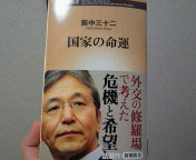 元外交官の藪中三十二さんの著書「国家の命運」を買ってきました!! うわーーーっ!藪中さんの著書だよ!しかも店頭平積み!!!!!! 超興奮です。 しかも顔写真入りの帯付き。 200ページ弱なので、おそらく一日あれば読み切っちゃえますが、 そんなのもったいない。 もう少し眺めてから読み始めます。 あ。23日、大阪行きの新幹線にお供願おうかな・・・。 外交史好きの私にとって、現代日本の中のあこがれの外交官だった藪中さん。 (もちろん英語ができないので、私としては、外交史好きの延長線のあこがれ) 退職されたのには本当に驚きましたが、 こういう形でまたお目に書かれて嬉しい限り。 しばらくは、この喜びをかみしめます!!! ・・・・。しかし、だれもこの心情を理解してくれないのは・・・ややさびしいものですね。。。 明日、午後から出張で横浜です。